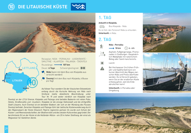 Nida - Pervalka - Juodkrantė - Smiltynė - Klaipėda - Palanga - Šventoji Dauer: 6 Tage Routelänge: 107 km |