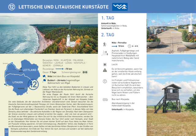 Lettische und Litauische Kurstädte Nida - Klaipėda - Palanga - Šventoji - Liepāja - Užava - Ventspils - Ķemeri - Jūrmala Dauer: 7 Tage Routelänge: 70 km |