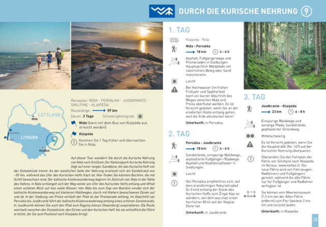 Nida - Pervalka - Juodkrantė - Smiltynė - Klaipėda Dauer: 3 Tage Routelänge: 59 km |