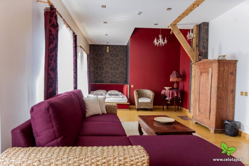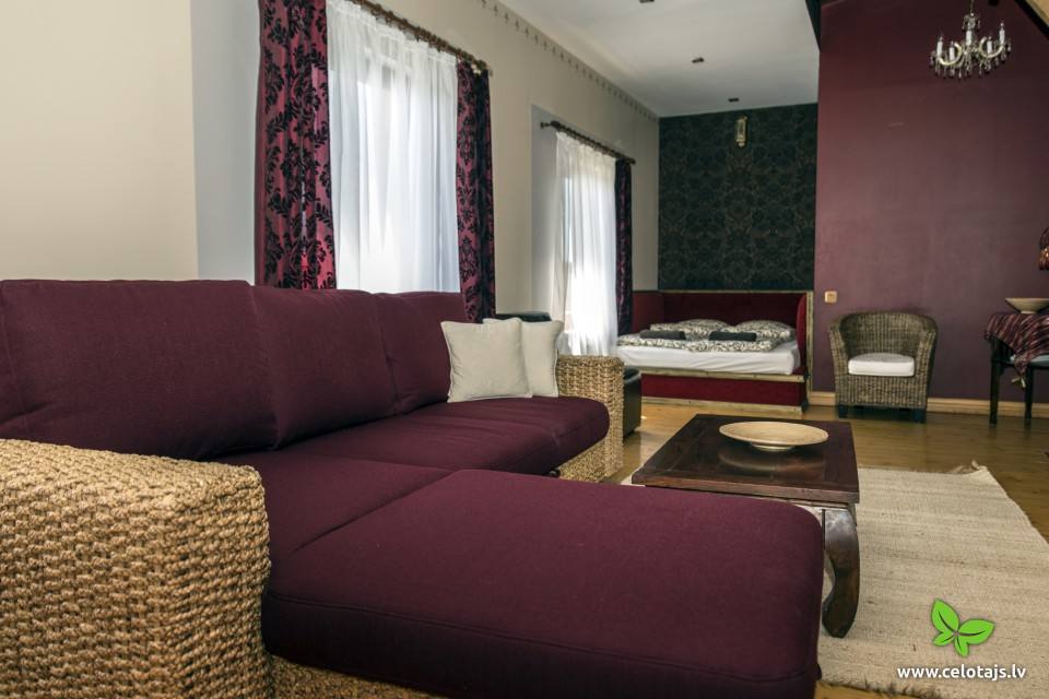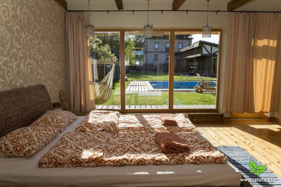 In Pāvilosta, just about 200m from the sea. Romantic rooms, sauna, outdoor swimming-pool and holiday apartments. There is a roof terrace and a barbecue area in the yard.