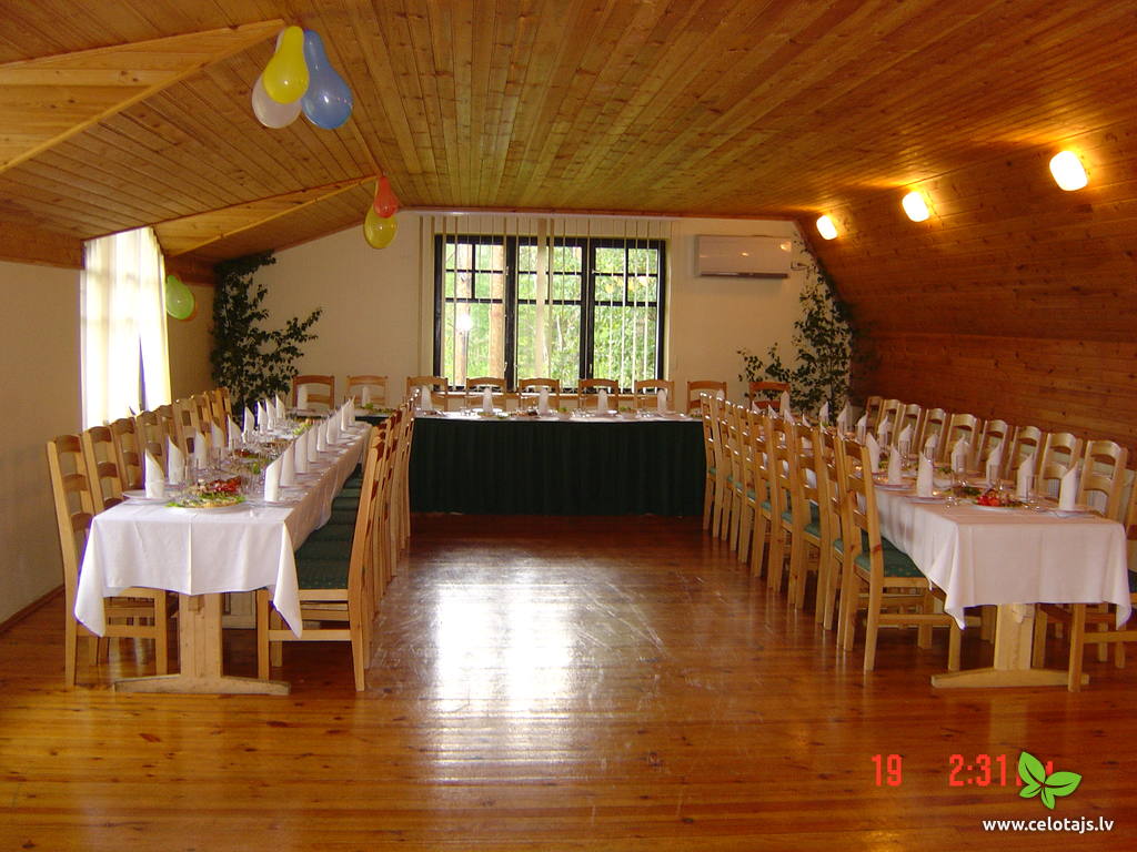 Facilities for seminars and parties of up to 100 people - air-conditioned hall. Rooms with TV, SAT, a restaurant, leisure room with fireplace and billiards. Sauna with heated pool. Open air massage bath. Sports grounds - basket ball, mini football, volley-ball. Table tennis, a trampoline. An open air stage in the yard. Catering service.