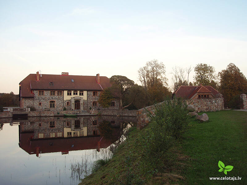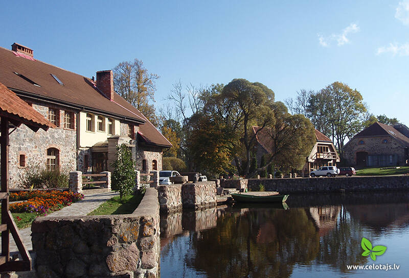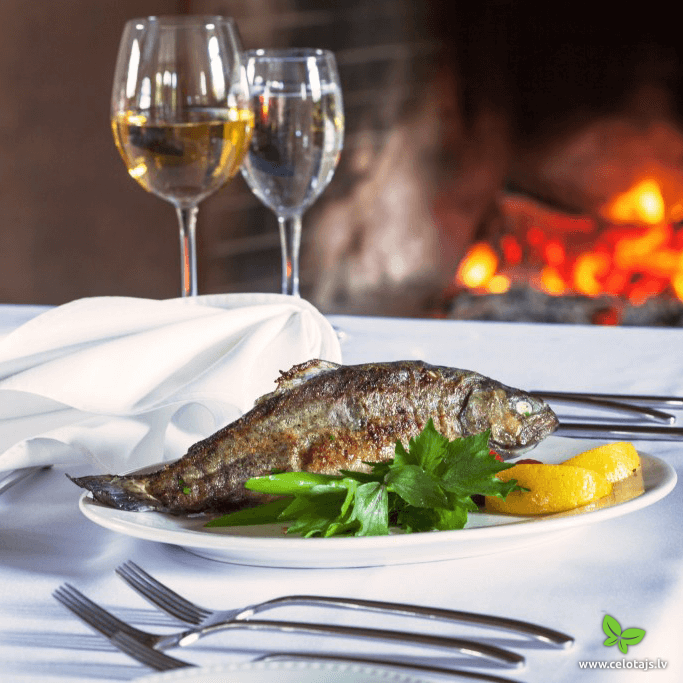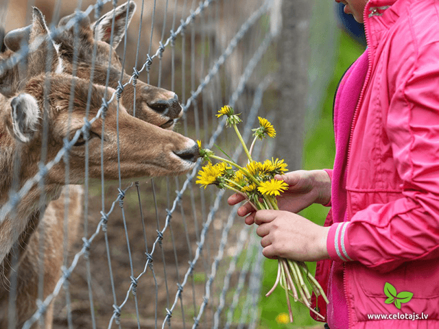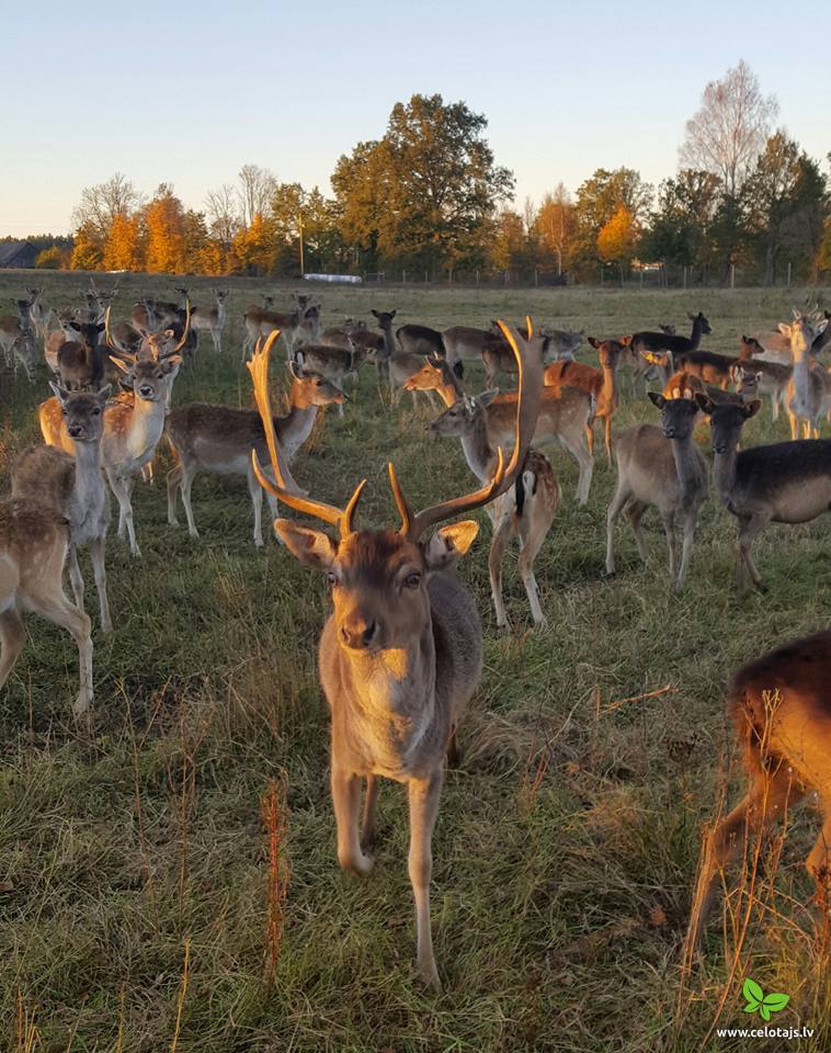 The farm breeds fallow deer and trout, grows vegetables and fruit. Visitors can see the deer and wild boar, taste berries and fruits directly from the garden, participate in creative workshops and cooking master classes called "Izgaršo dzīvi". The hostess combines the regional culinary heritage traditions of Kurzeme region and contemporary cuisine. The food is prepared on live fire, using the deer, trout and vegetables from the farm. The host is a winemaker who makes every bottle with great care. Guests can enjoy tastings and stories in the romantic wine cellar.