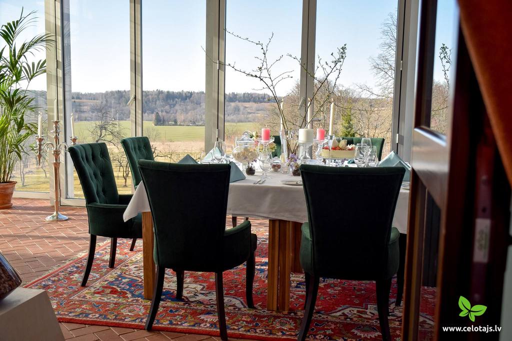 Located in Kalnmuižas Castle. The pride of the restaurant's menu are the greens, fruits and vegetables from the ancient valley of the River Abava, wild game and mushrooms from Kurzeme forests, meat, crayfish, trout, goat’s cheese and home-made bread from the district’s farms. The menu depends on the season. Offer includes seasonal specialities.