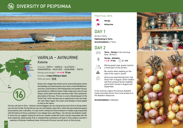 Through the onion villages of Lake Peipsi: Varnja – Alatskivi (EE) Tartu – Varnja – Alatskivi – Tartu Duration: 2 days Distance: 19 km (6-8 h) |