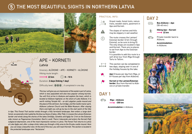 The most beautiful sights of Northern Latvia: Ape – Korneti Alūksne – Ape – Korneti – Alūksne Duration: 2 days Distance: 22 km (8-10 h) |