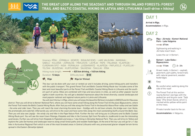 Siit leiad 18 ühe- või mitmepäevast (kuni 11 päeva) matkakava ek reisi, mis tuginevad Metsa matkaraja marsruudile. Balti riikides kulgeb Metsa matkarada on osa Euroopa kaugmatkateest E11 ning see läbib kolme riigi kõige huvitavama ja metsase loodusega piirkondi, mis on tuntud eriliste loodus- ja kultuuriväärtuste poolest. Mitmed reisikavad sisaldavad tutvumist rahvusparkide, loodusparkide ja biosfäärikaitsealadega, aga ka UNESCO maailmapärandi paikadega.