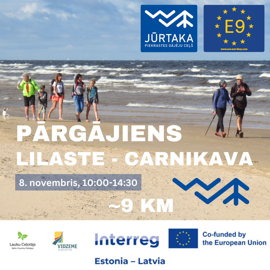 8. novembrī visi interesenti aicināti "Jūrtakas" pārgājienā no Lilastes līdz Carnikavai, ~9 km.