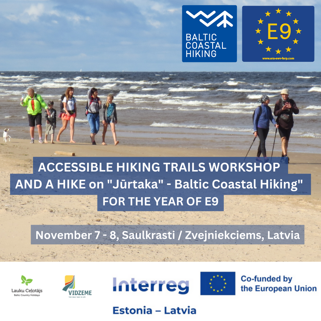 7. novembrī Zvejniekciema kultūras namā Saulkrastu novadā notiks darbseminārs, kurā dalībnieki no Norvēģijas, Anglijas, Itālijas, Igaunijas un Latvijas dalīsies praktiskā pieredzē un risinājumos pārgājienu vides pieejamības uzlabošanai dažādām sabiedrības grupām. Norvēģijas Pašvaldību savienības pārstāvis stāstīs par to, kā pašvaldībās plāno un īsteno teritoriju pieejamību. Seminārā piedalīsies arī pārstāvis no Eiropas garo distanču pārgājienu asociācijas. Šī organizācija 2023. gadu ir pasludinājusi par garo distanču pārgājienu maršruta E9 gadu, īpaši to popularizējot. Jūrtaka ir E9 daļa Baltijas valstīs. Pēc prezentācijām un diskusijām 7. novembra vakarā dalībnieki dosies pārgājienā Jūrtakas posmā Saulkrastos. Savukārt, 8. novembrī paredzēts pārgājiens posmā no Lilastes līdz Carnikavai, kur projekta ietvaros tiks izveidots pārgājienu vides pieejamības risinājums cilvēkiem ratiņkrēslos. Pārgājienā tiek aicināts ikviens interesents, īpaši dalībnieki no projektā iekļautajām mērķa grupām, lai kopīgi izzināto šo grupu vajadzības vides pielāgošanai.