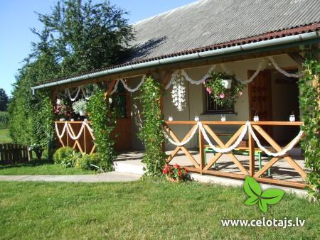 Lauku māja starp jūru un Liepājas ezeru, 7km no Liepājas. 4 istabas viesiem atsevišķā mājiņā, WC un duša, neliela virtuve, kā arī neliels namiņš ar ērtībām divām personām. Blakus ēkās divas viesību zāles, virtuve un lauku pirts.