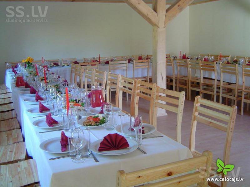 Lielāku kompāniju (līdz 70 personām) ir iespējams izmitināt viesu nama ēkā.