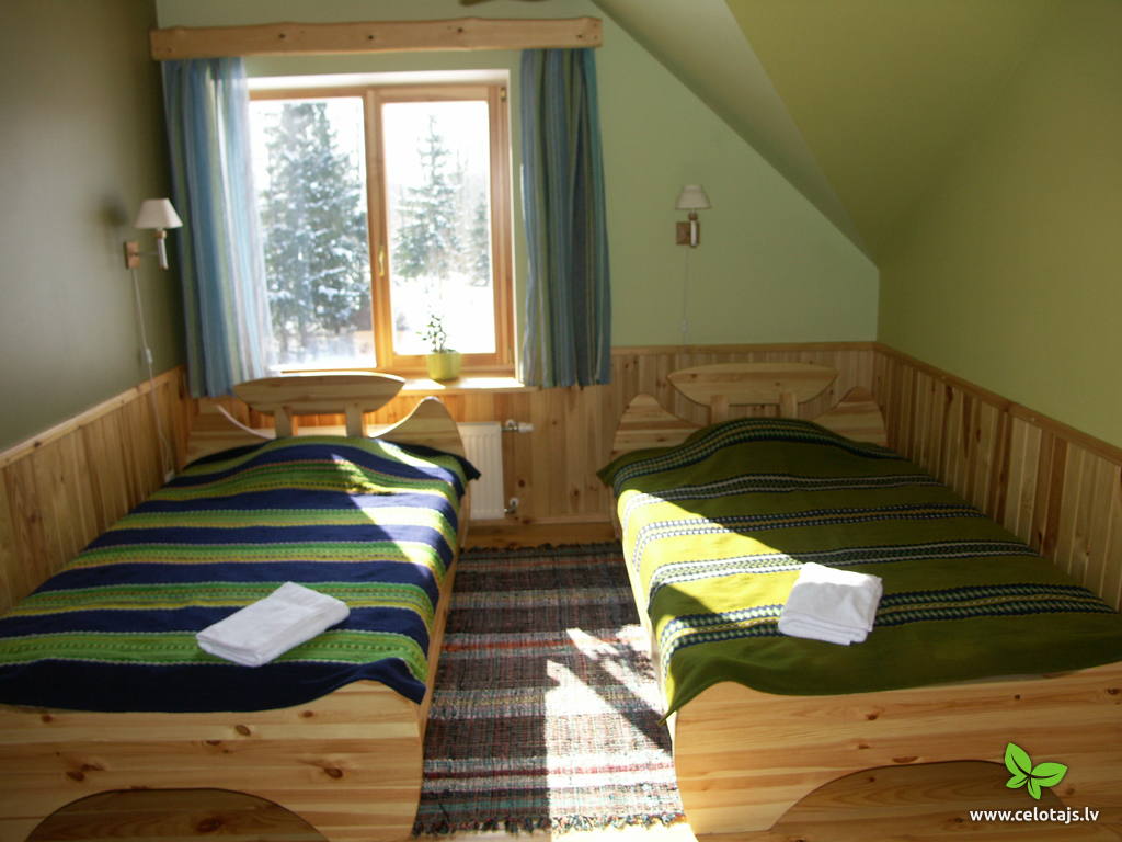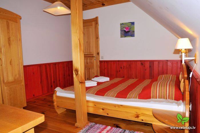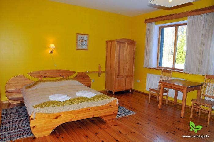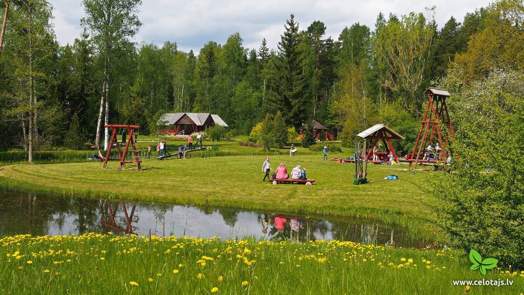 20 km no Talsiem. Viesu nams ar kamīnzāli līdz 80 personām. Brīvdienu māja ar lauku pirtiņu. Kempinga namiņi un telšu vietas.