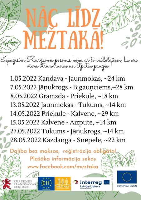 22. maijā "Mežtakas" pavasara pārgājiens no Snēpeles uz Kuldīgu